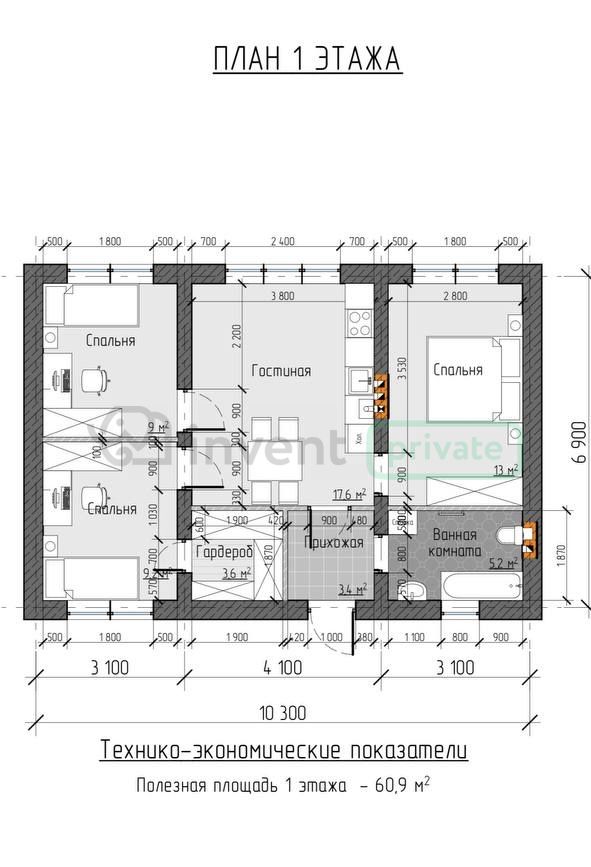 Жилая площадь | 60.90 |