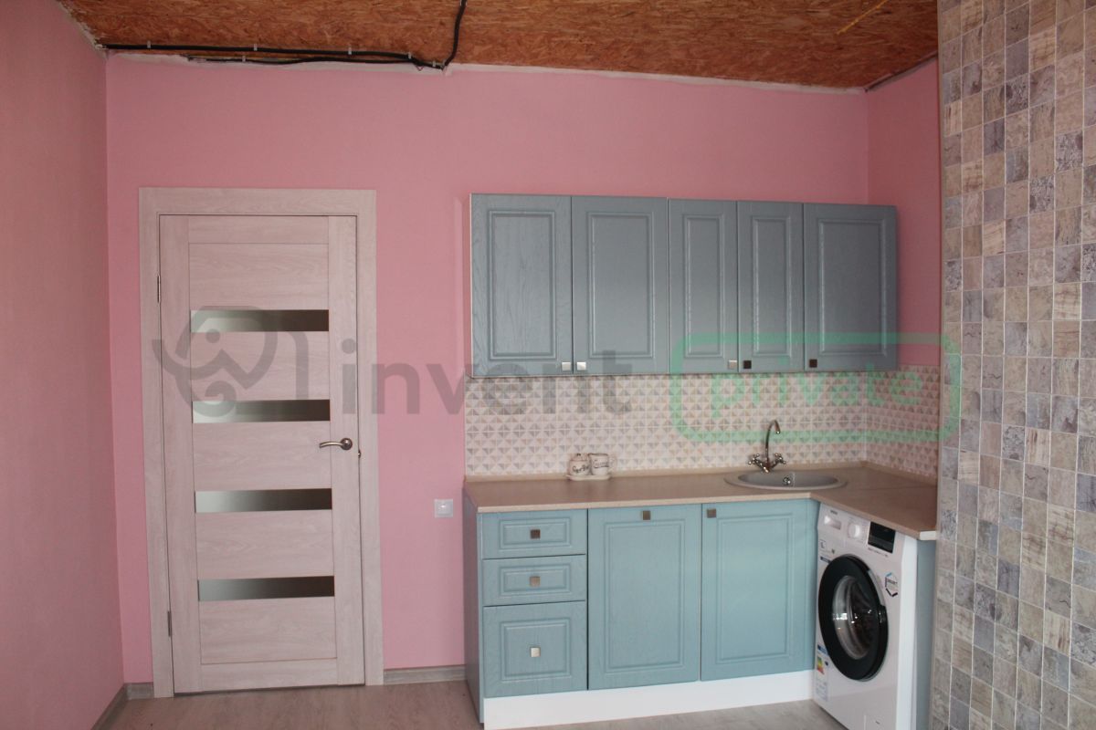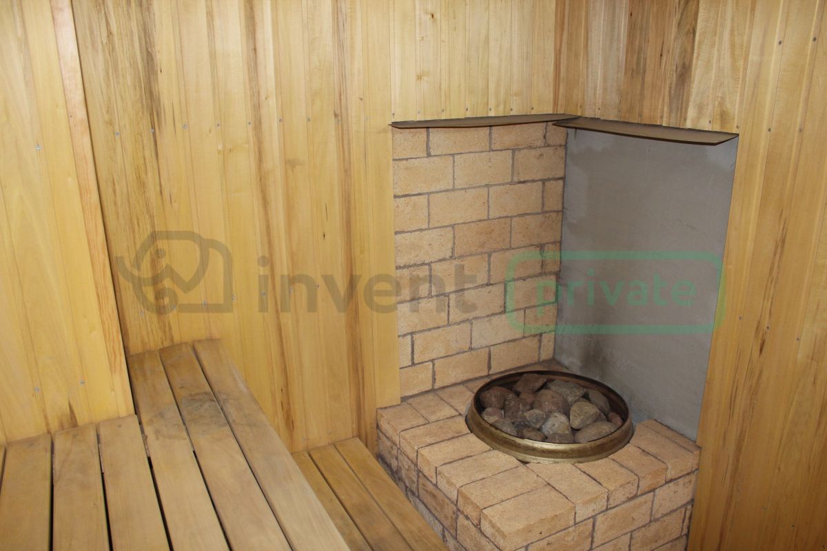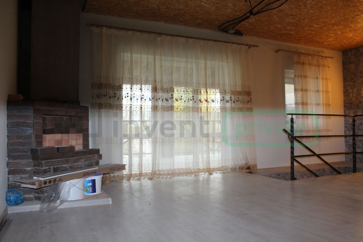 На втором этаже просторная кухня (14.5 кв.м), спальня и шикарный холл с камином.
