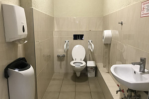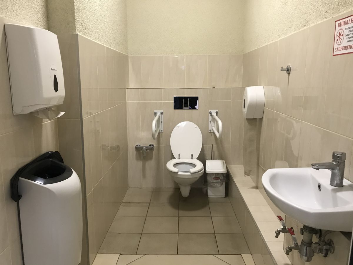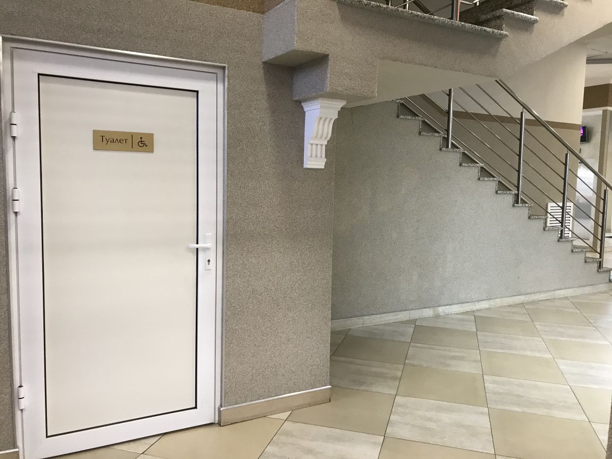 Обустроена специализированная система для маломобильных групп (кнопка вызова, трап, спец кресло и оборудованный сан/зел на 1 этаже здания)