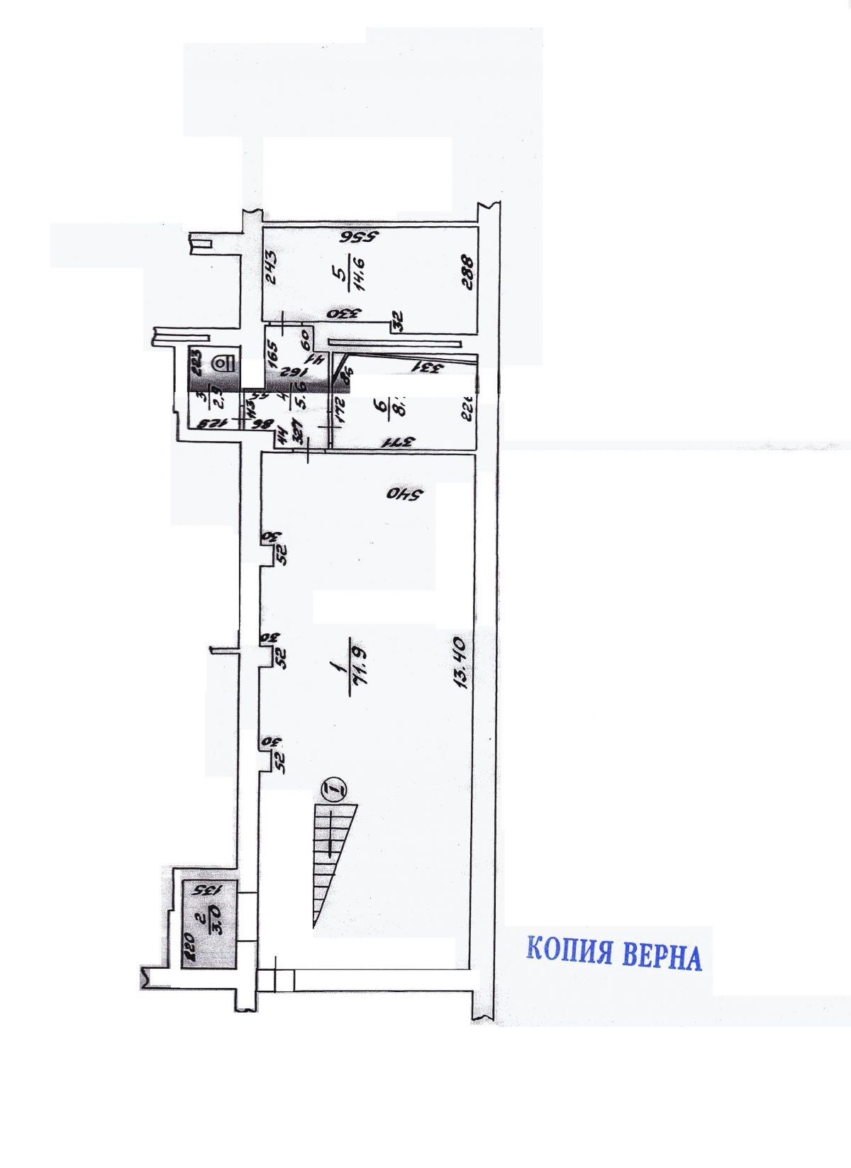 Состоит из помещения на первом этаже площадью 138 кв.метра и подвала площадью 106 кв.метра.
