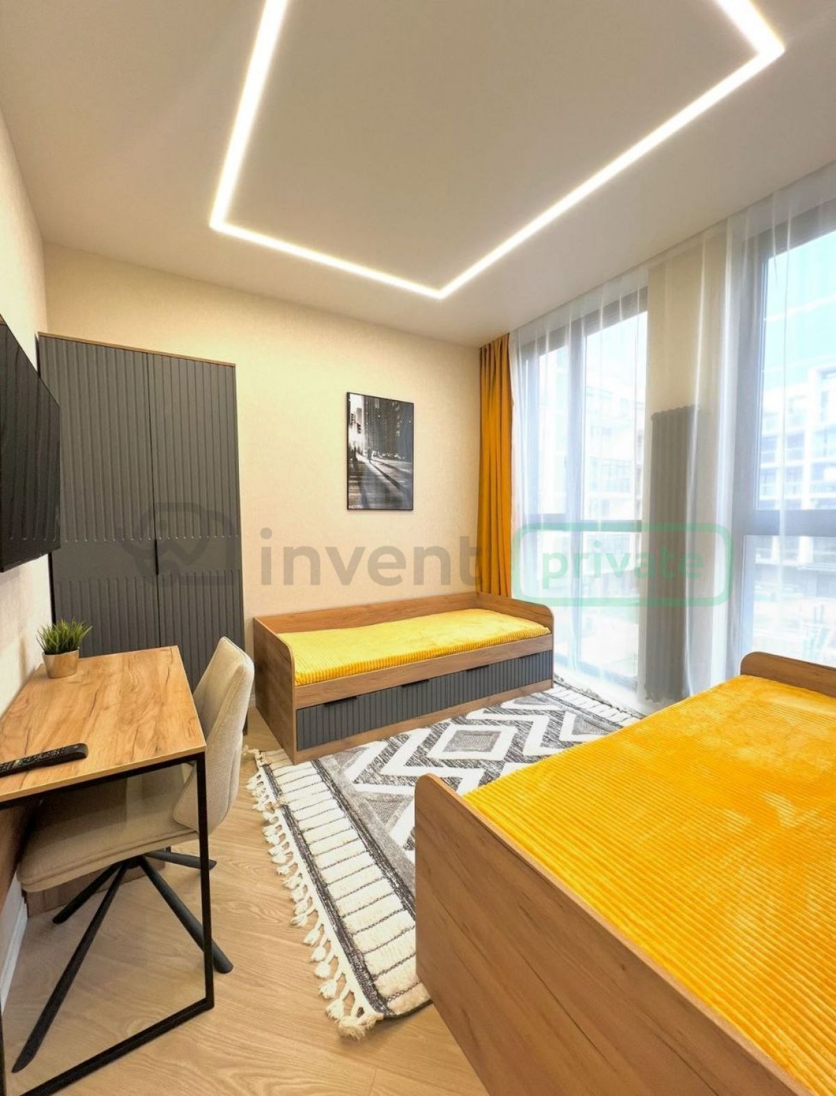 - Гостевая комната с двумя кроватями и рабочим местом