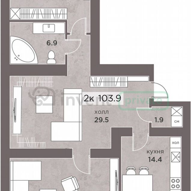 Общая площадь: 103.9 м²