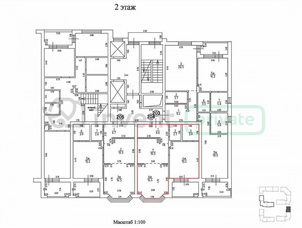 - Два санузла (3,8 м² и 2,6 м²)