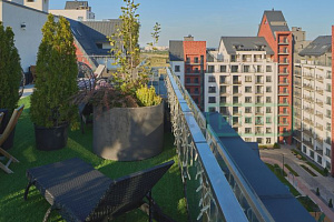 Эркер в гостиной добавляет архитектурной выразительности и наполняет квартиру естественным светом. Просторная лоджия может стать уютной лаунж-зоной.