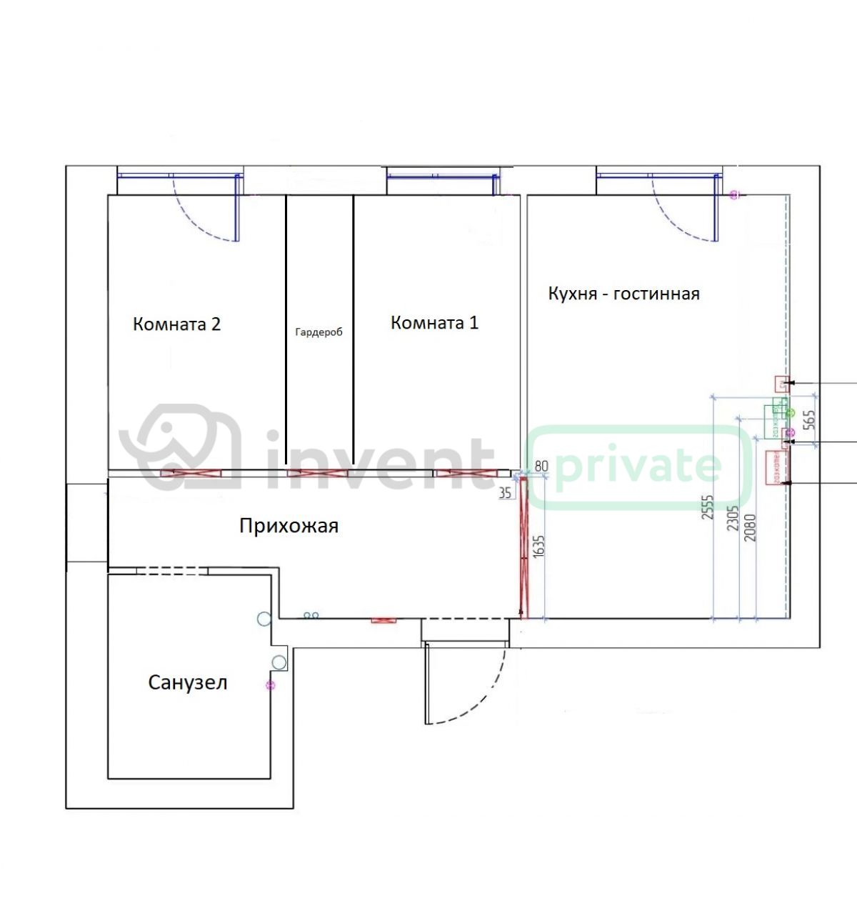 | Кол-во комнат | 2 |