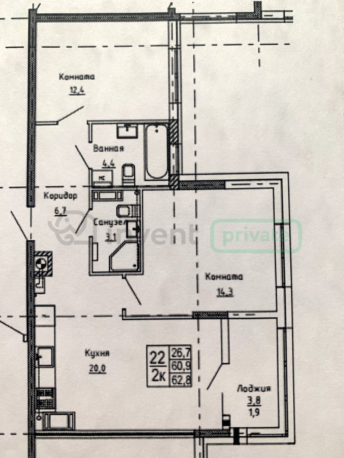 - ✅ Просторная кухня-гостиная: 20м², с выходом на лоджию 4,2 м²