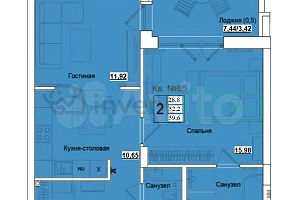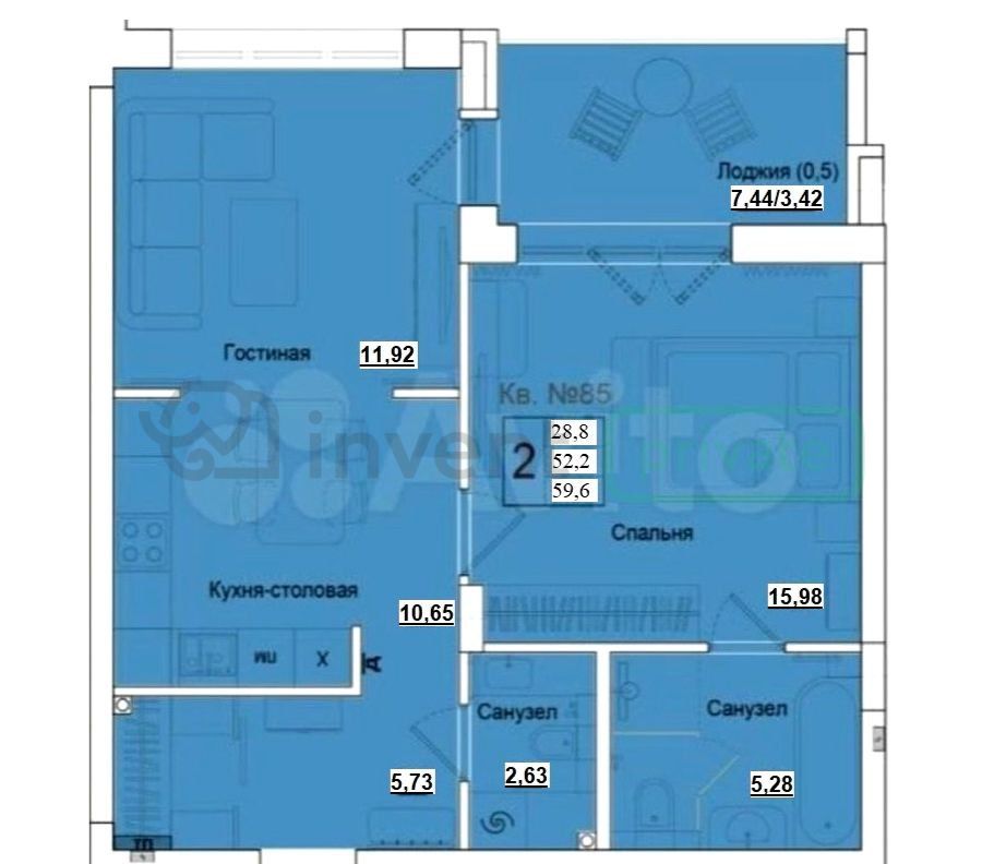 Общая площадь: 59,6 м²