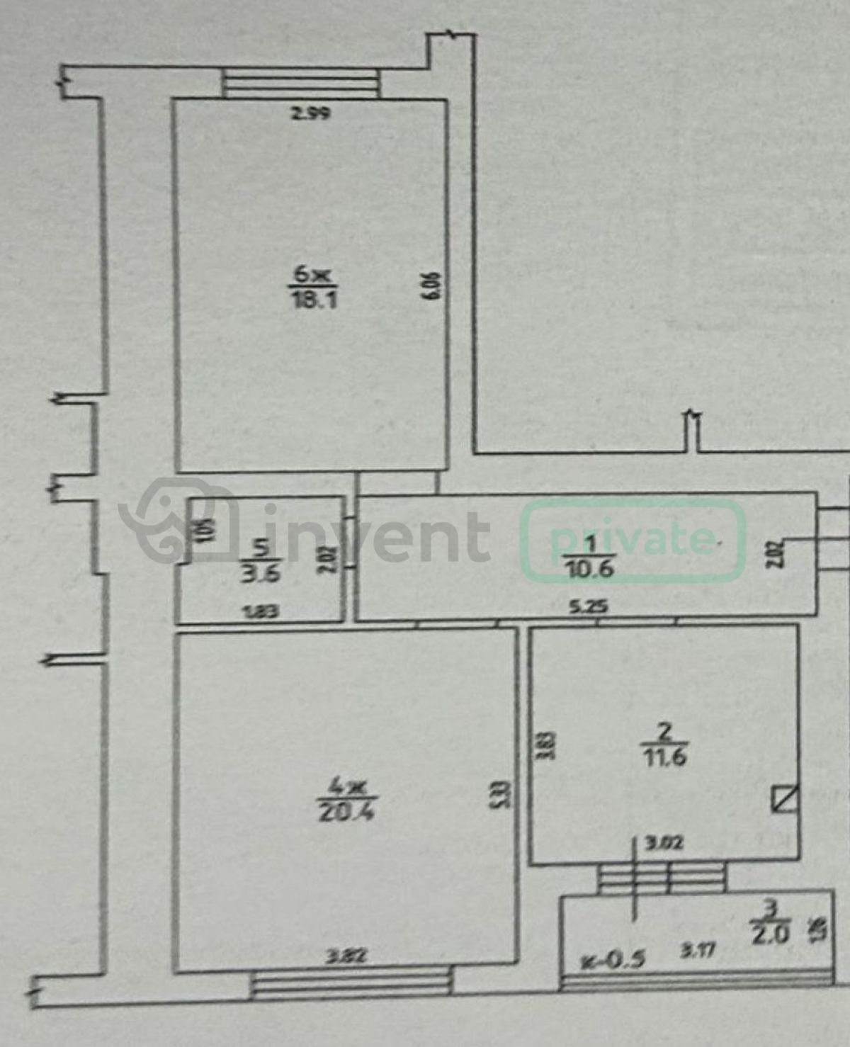 Жилые комнаты 20,4 и 18,1 м²