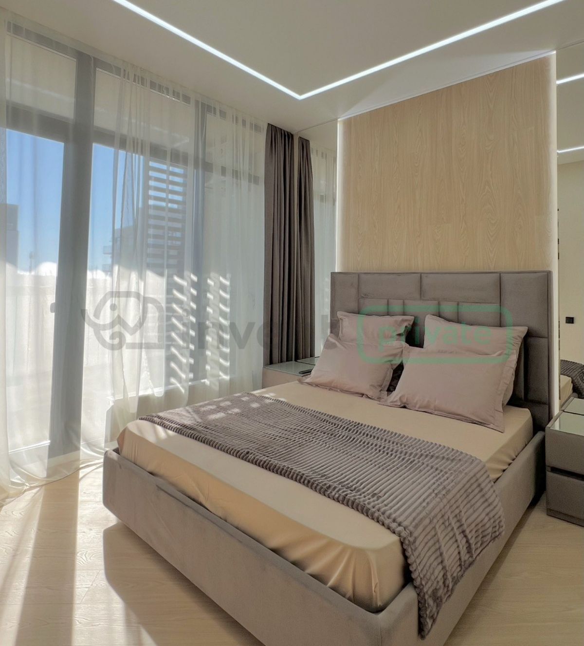 - Уютная спальня с кроватью Аскона, выход на лоджию