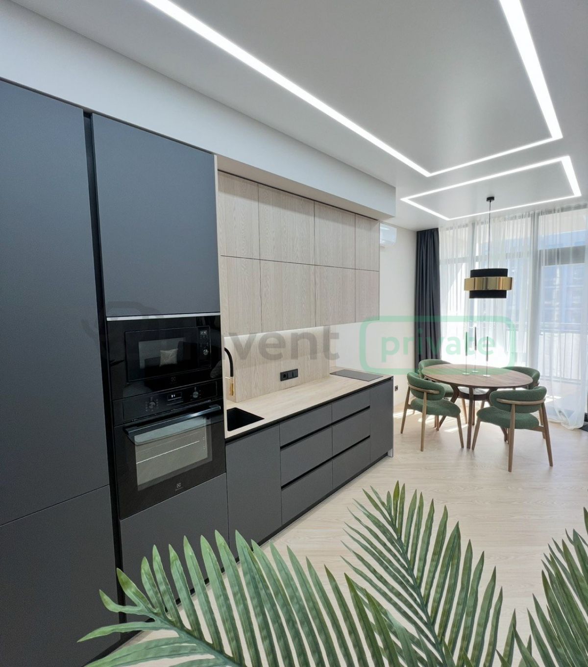 - Просторная кухня-столовая с европейской фурнитурой и техникой