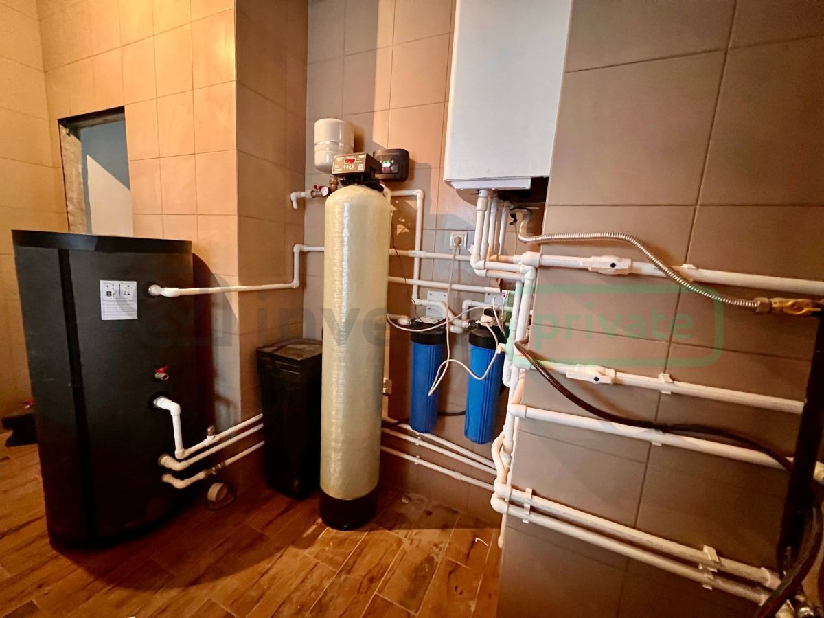 - Хозяйственный блок: Котельная с системой очистки воды, с современным одноконтурным котлом и бойлером косвенного нагрева для полноценного горячего водоснабжения, прачечная, мастерская.