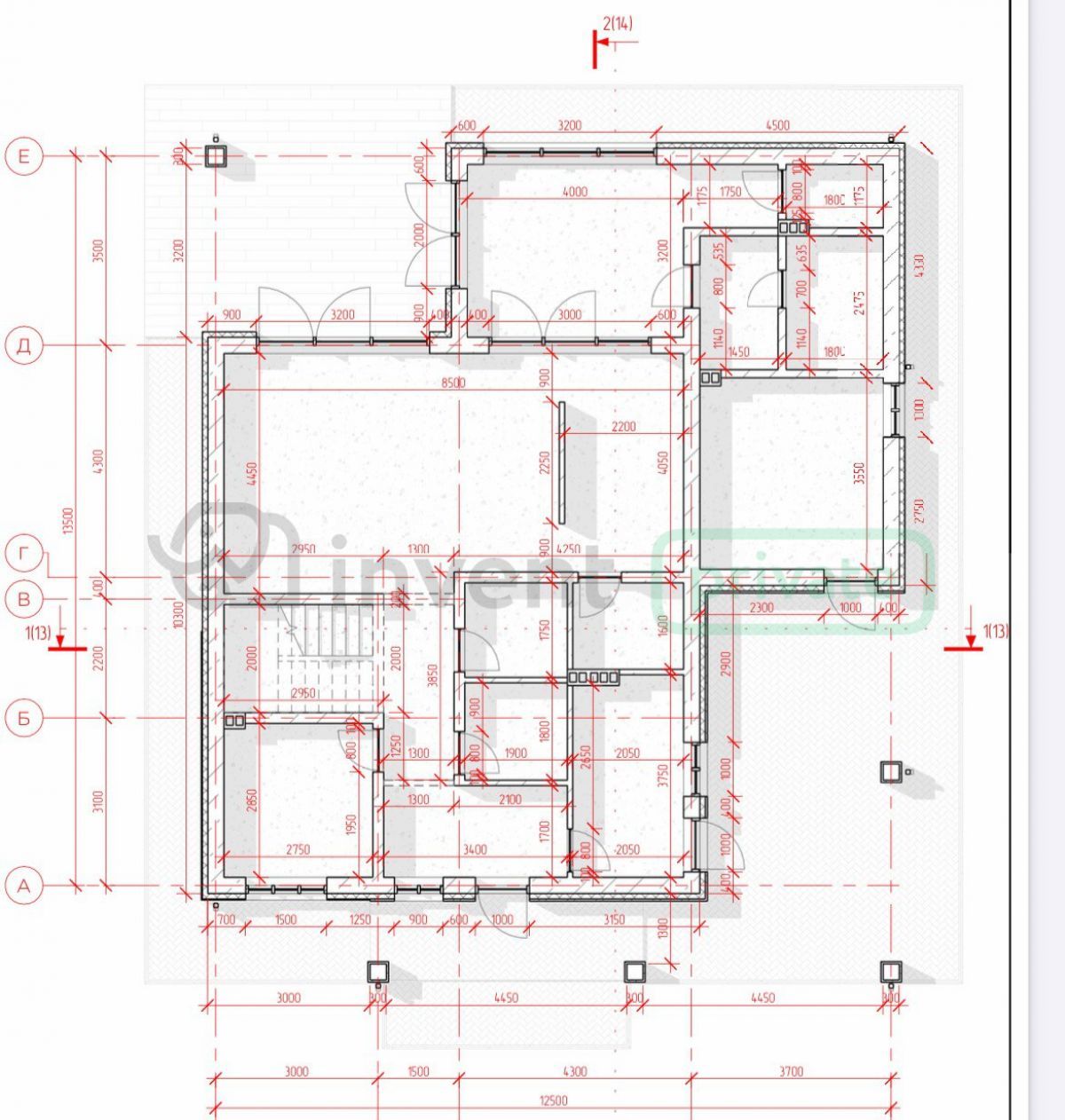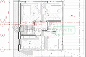 - Перекрытия: Межэтажное — монолитная плита 180 мм. Чердачное — утепленное деревянное.