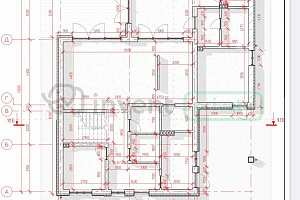 - Фундамент и стены: Ленточный фундамент (900 мм) с бетонной подушкой и плитой. Стены из блоков: наружные — 300 мм, внутренние несущие — 200 мм, перегородки — 100 мм.
