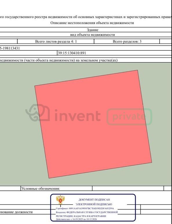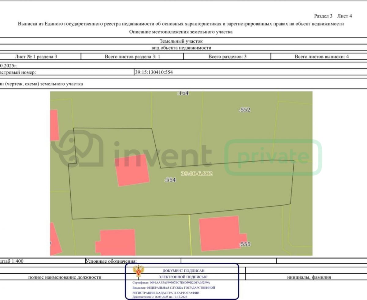 | Кадастровый номер участка | 39:15:130410:554 |