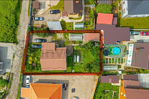 Общая территория огорожена по всему периметру. Установлены откатные ворота. Участок дренирован. Передняя часть - парковочные места для 3-4 автомобилей. Задняя часть - зона садоводства и огородничества. Место для пикников, барбекю и отдыха всей семьей.
