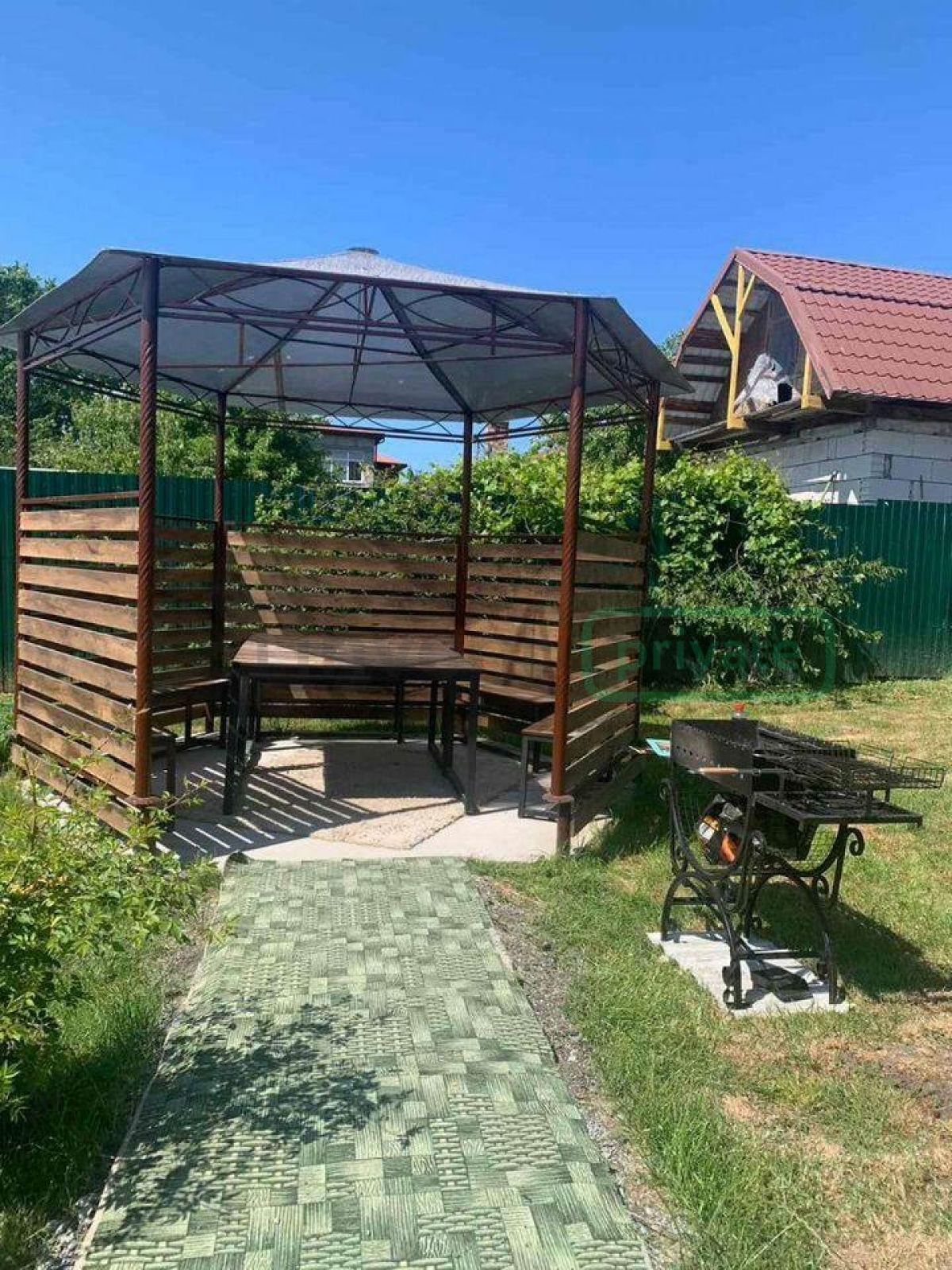 На участке расположены строения: гостевой летний домик, беседка, хозяйственное помещение.